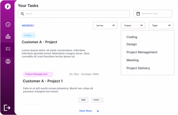 Easily log your work hours with one-click tracking, so you can focus on getting things done.